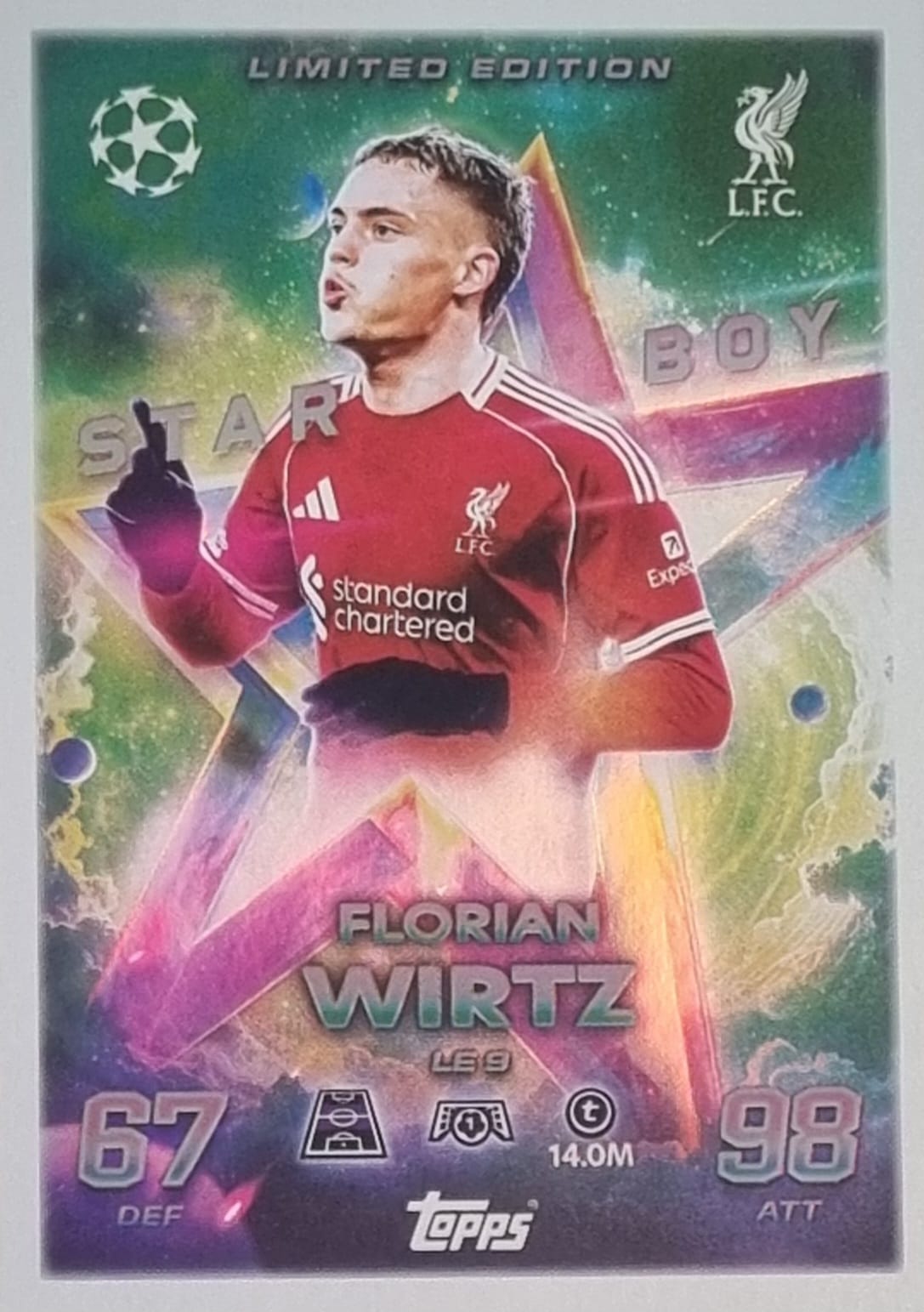 Die Topps Match Attax Champions League 2025/26 Limited Edition Karte LE 09 Florian Wirtz ist eines der absoluten Highlights der neuen Saison. Mit exklusivem Design und hohem Sammlerwert gehört diese Karte in jede Match Attax Sammlung. Wer seine Sammlung komplettieren will, kommt an dieser LE nicht vorbei.