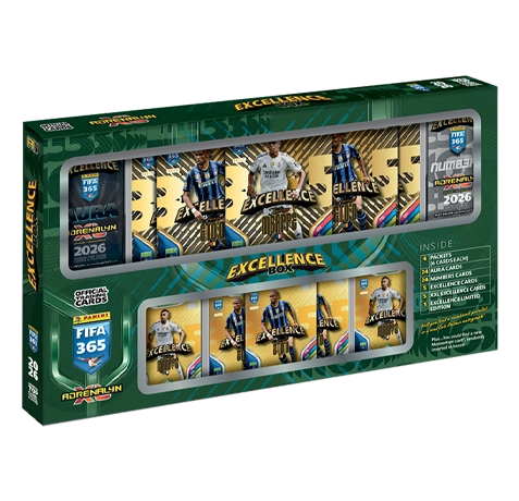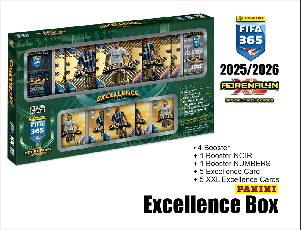 Die Panini FIFA 365 2026 Adrenalyn XL Excellence Box ist das absolute Premium-Highlight der neuen Kollektion.