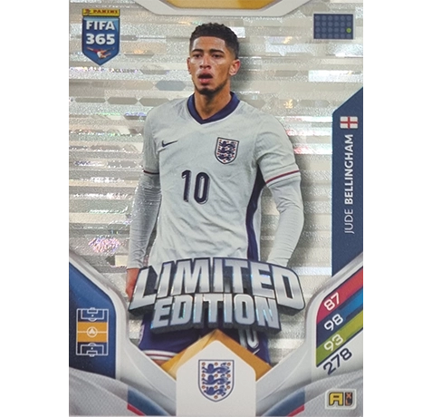 Panini FIFA 365 2026 Adrenalyn XL – Limited Edition Jude Bellingham (England) ist eine exklusive Sammelkarte aus der aktuellen FIFA-365-Kollektion von Panini und ein echtes Highlight für ambitionierte Sammler und Adrenalyn-XL-Fans.