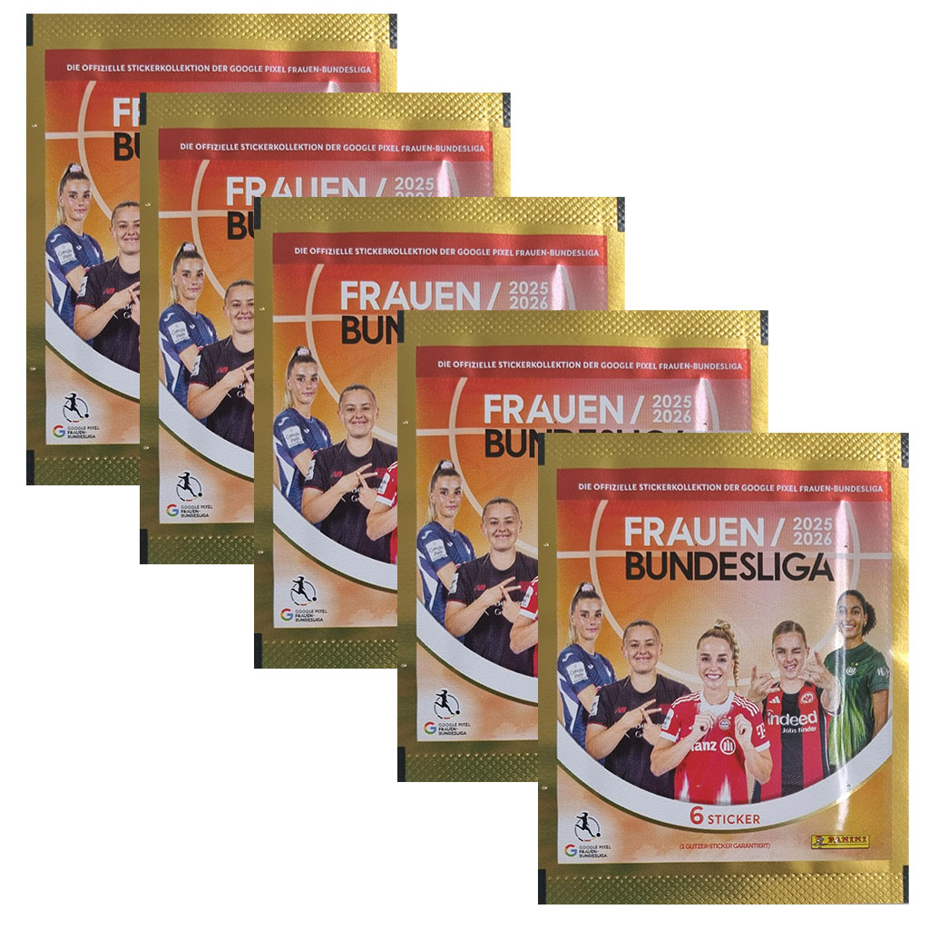 Dieses Set enthält 5 original Panini Stickertüten mit jeweils 6 Stickern – also insgesamt 30 Sticker mit Spielerinnen, Teams und Highlights der deutschen Frauen-Bundesliga.