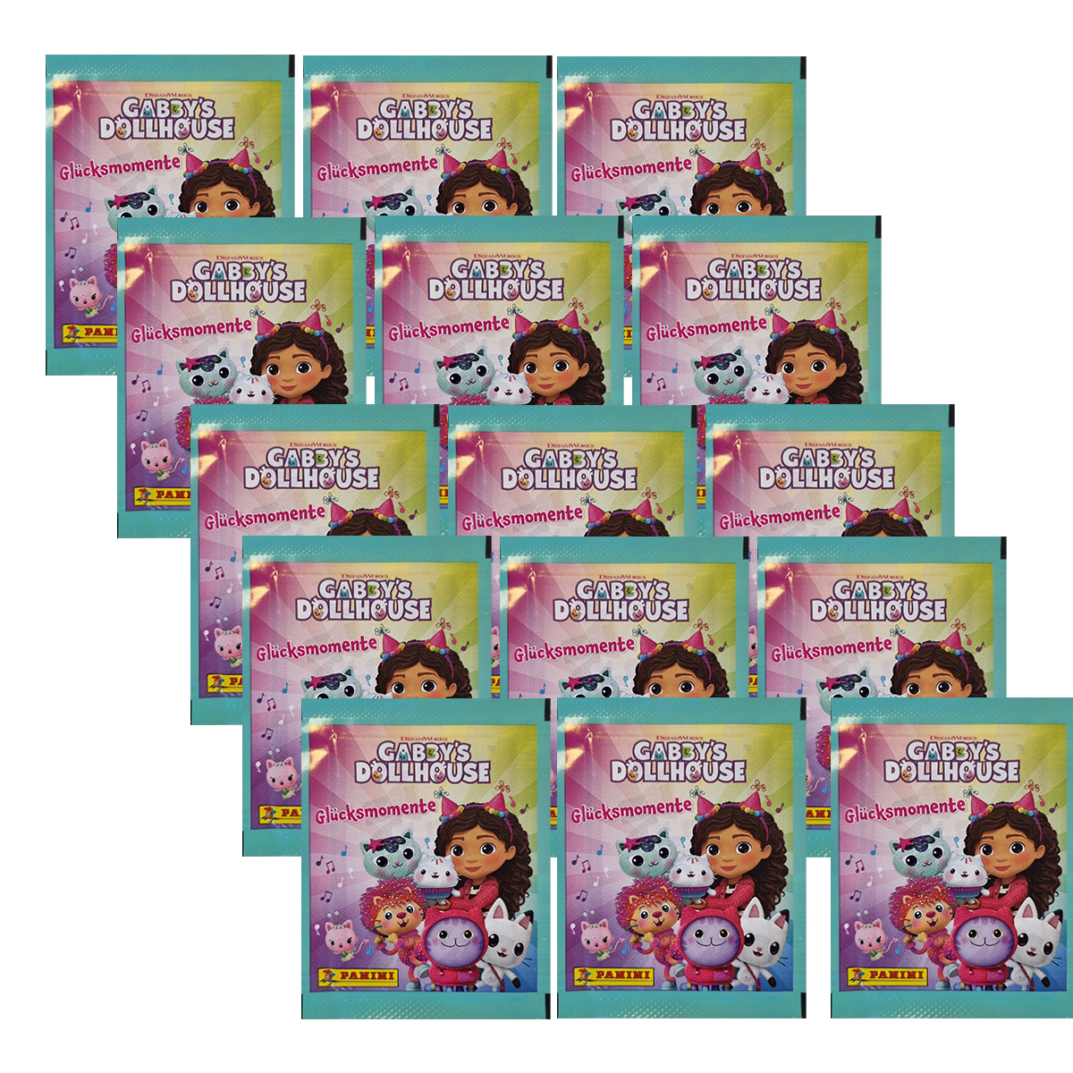 Mit den 15 Stickertüten der Panini Gabbys Dollhouse Glücksmomente Sticker Kollektion holst du dir noch mehr Sammelspaß und Vielfalt! Insgesamt 75 Sticker mit süßen, glitzernden und detailreichen Motiven rund um Gabby und ihre Freunde warten auf dich. Perfekt, um das Album schnell zu füllen oder doppelte Sticker zu tauschen.