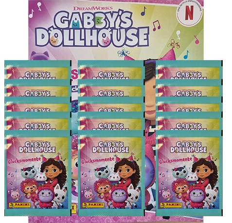 Panini Gabbys Dollhouse Glücksmomente Sticker Album + 15 Stickertüten