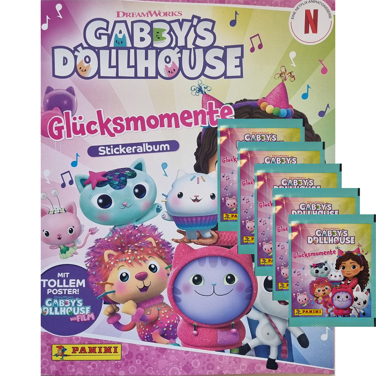 Panini Gabbys Dollhouse Glücksmomente Sticker Stickeralbum + 5 Stickertüten