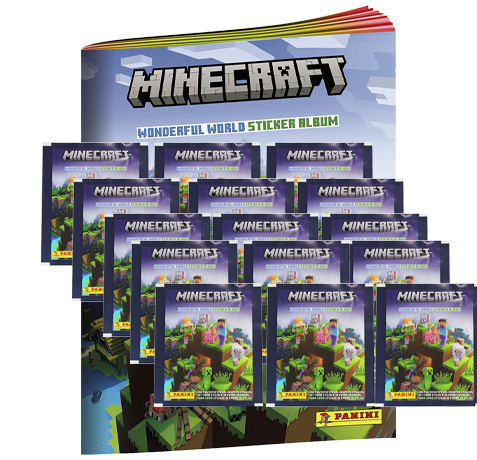 Sie erhalten: Panini Minecraft Wonderful World Sticker – 15x Stickertüten