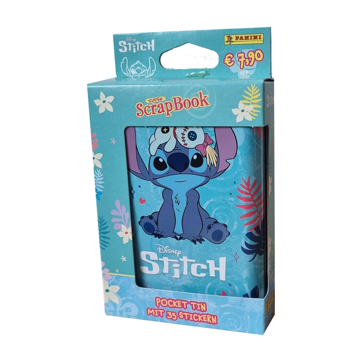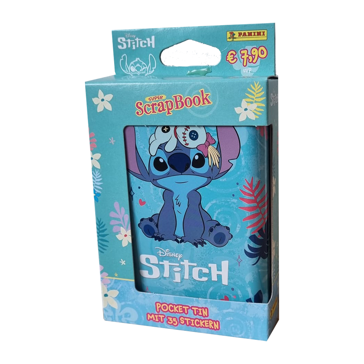 Mit der türkisen Panini Stitch Super ScrapBook Pocket Tin 2025 holst du dir ein echtes Highlight in deine Sammlung. Die handliche Dose enthält 7 verschlossene Stickertüten mit insgesamt 35 originalen Disney Stitch Stickern. Sie ist Teil der offiziellen Panini-Kollektion und besticht durch ihr einzigartiges türkisfarbenes Design, das Stitch in einer besonders niedlichen Pose zeigt.