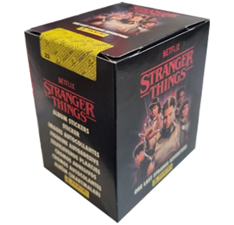 Dieses Display enthält 50 original Panini Stickertüten mit jeweils 5 Stickern – also insgesamt 250 Sticker rund um Eleven, Mike, Hopper & Co.