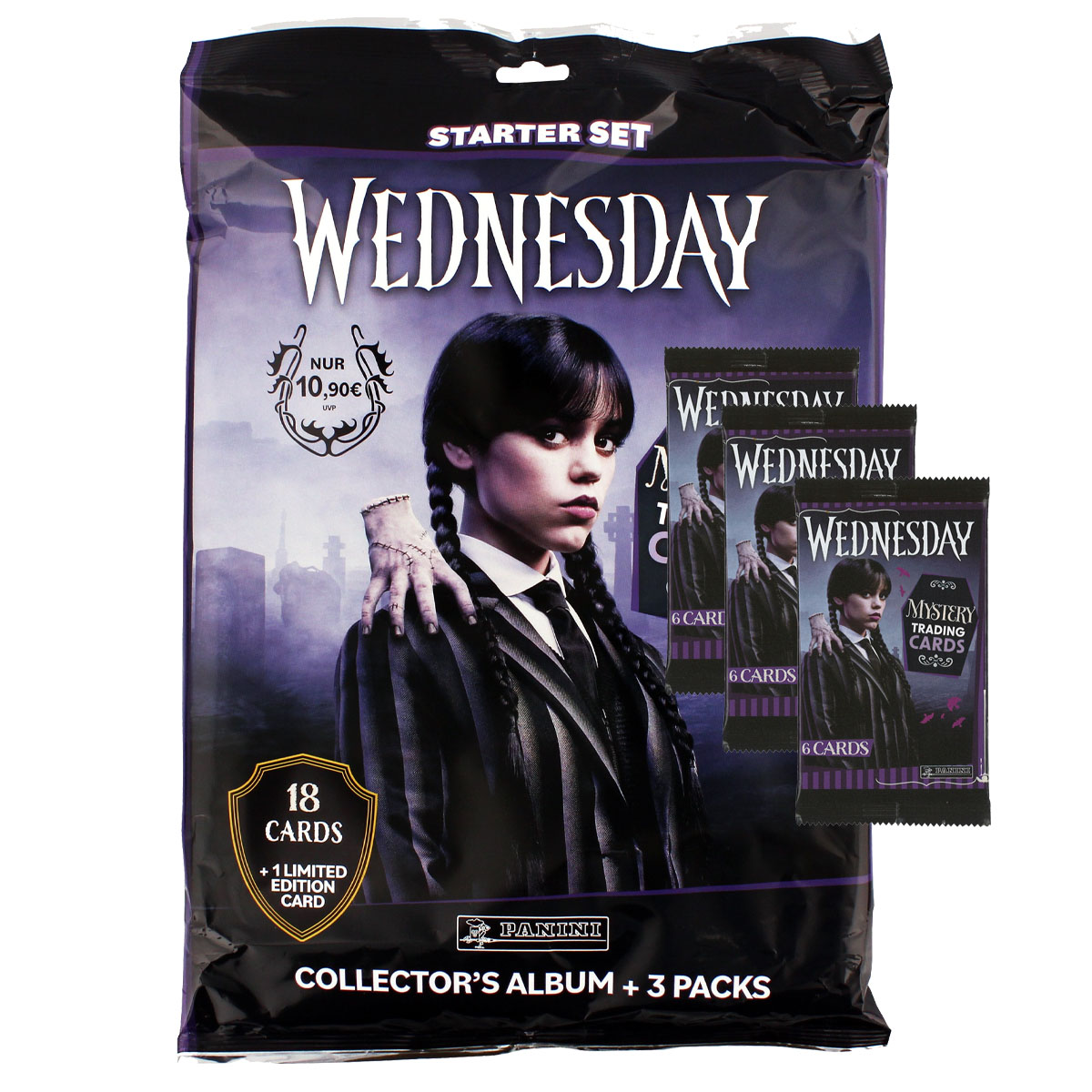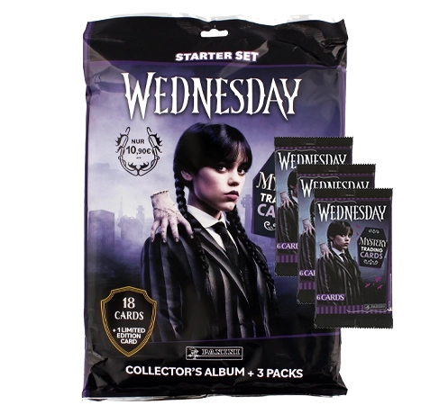 - Produktname: Panini Wednesday Trading Cards – Starter Pack + 3 Booster