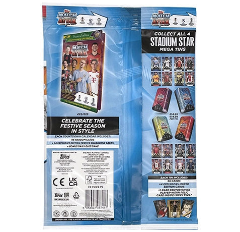 Match Attax kehrt für die Saison 2023/24 zurück und bietet die größten Superstars der Welt aus der UEFA Champions League, der UEFA Europa League und der UEFA Europa Conference League in 4 speziellen Boosterdosen zum Sammeln. Machen Sie sich bereit für eine weitere sensationelle Saison von Match Attax! das 100 % offizielle ultimative Sammelkartenspiel, das alle UEFA-Klubwettbewerbe repräsentiert. Entdecken Sie die besten Spieler der Welt in der neuen Kollektion mit seltenen Pulls, brandneuen Limited Editions und superexklusiven Karten, packen Sie Pakete für Spezialkarten aus und schalten Sie tolle NEUE SUPRISES in der großartigsten UCL Match Attax Collection aller Zeiten von Topps frei! Mit erstaunlichen 3 Spezial-Einsteckkarten in jeder Packung sind diese Packungen stapelbar!