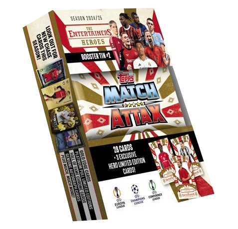 Match Attax ist das beliebteste Sammelkartenspiel von Topps, das sich auf die aufregendsten Momente der UEFA Champions League konzentriert. In der Saison 2024/2025 bringt Topps eine neue Reihe von Karten heraus, die aktuelle Stars sowie legendäre Spieler abbilden. Die Booster Tin2 / HEROES enthält eine sorgfältig zusammengestellte Auswahl an Karten, die sowohl für das Spiel als auch zum Sammeln geeignet sind.
