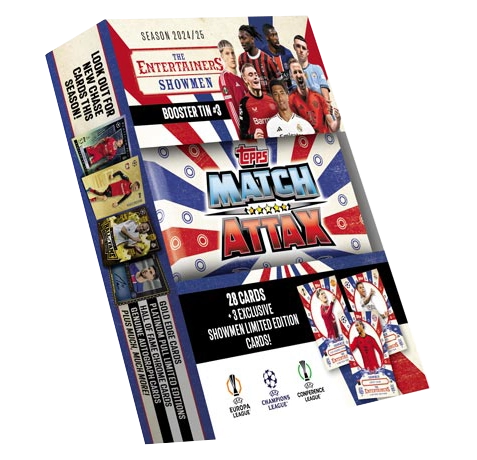 Topps Champions League Match Attax 2024/2025 / Booster Tin Set alle 4x verschiedene Tin´s Sie erhalten: Topps Champions League Match Attax 2024/2025 / Booster Tin Set alle 4x verschiedene Tin´s Inhalt je Booster Tin 28 Karten + 3 exklusive limitierte Karten garantiert  Booster Tin #1 – MAGICIANS (28 Cards + 3 Exclusive Limited Edition Cards)  Booster Tin #2 – HEROES (28 Cards + 3 Exclusive Limited Edition Cards)  Booster Tin #3 – SHOWMEN (28 Cards + 3 Exclusive Limited Edition Cards)  Booster Tin #4 – MASTERS (28 Cards + 3 Exclusive Limited Edition Cards) Topps Champions League Match Attax 2024/2025…