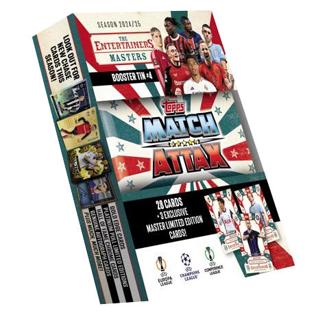 Topps Champions League Match Attax 2024/2025 / Booster Tin Set alle 4x verschiedene Tin´s (28 Karten + 3 exklusive limitierte Editionen)