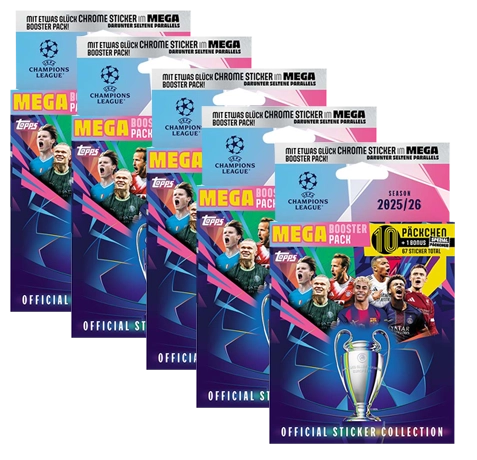 Topps Champions League Sticker 2025/26 – 5× Mega Eco Pack
