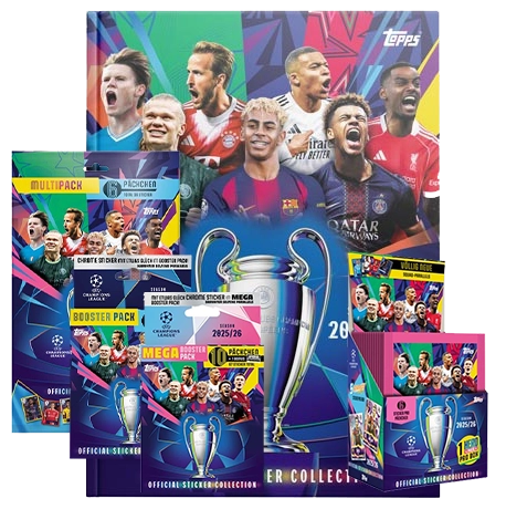 Topps Champions League Sticker 2025/26 – Mega Bundle (Display + Hardcover Album + Eco Pack + Multipack + Mega Eco)