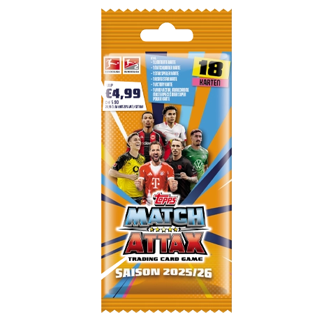 Die gezeigten Produktbilder stammen aus dem Vorverkauf und können vom finalen Design der Topps Match Attax Bundesliga 2025/26 Produkte abweichen.