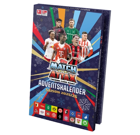 🎄 Endlich ist er wieder da! Der Topps Match Attax Bundesliga 2025/26 Adventskalender kehrt zur neuen Saison zurück – nachdem er im letzten Jahr ausgefallen war, haben ihn Sammler und Fans sehnsüchtig erwartet. Mit diesem besonderen Adventskalender erlebst du 24 Tage lang Bundesliga-Sammelspaß pur und sicherst dir exklusive Karten-Highlights.