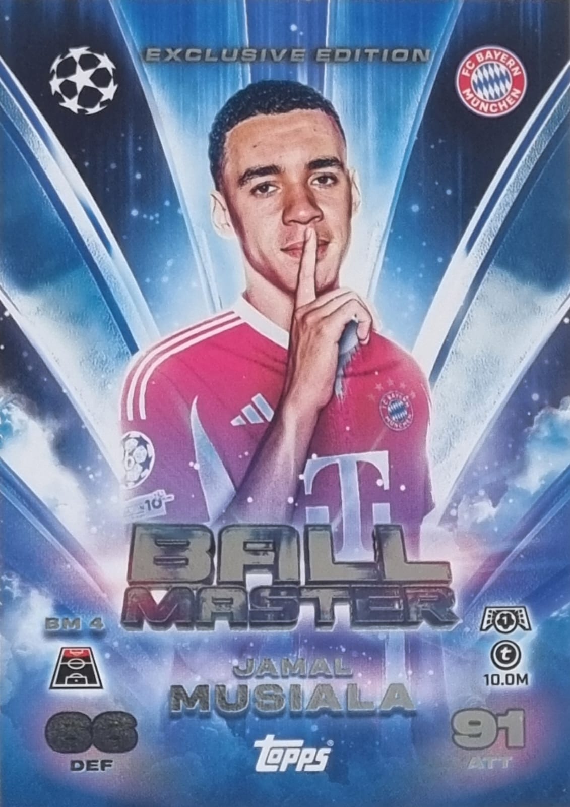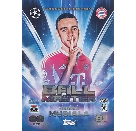 Die Topps Match Attax Champions League 2025/26 Ball Master BM 4 JAMAL MUSIALA ist eines der absoluten Highlights der neuen Saison. Mit exklusivem Design und hohem Sammlerwert gehört diese Karte in jede Match Attax Sammlung. Wer seine Sammlung komplettieren will, kommt an dieser BM nicht vorbei.