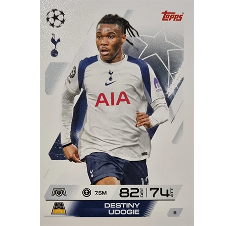 1 × Topps Match Attax Champions League 2025/26 Karte 005 DESTINY UDOGIE – einzeln verpackt in Schutzhülle.