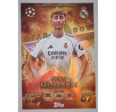 Die Topps Match Attax Champions League 2025/26 Limited Edition Karte LE 19 Dean Huijsen ist eines der absoluten Highlights der neuen Saison. Mit exklusivem Design und hohem Sammlerwert gehört diese Karte in jede Match Attax Sammlung. Wer seine Sammlung komplettieren will, kommt an dieser LE nicht vorbei.