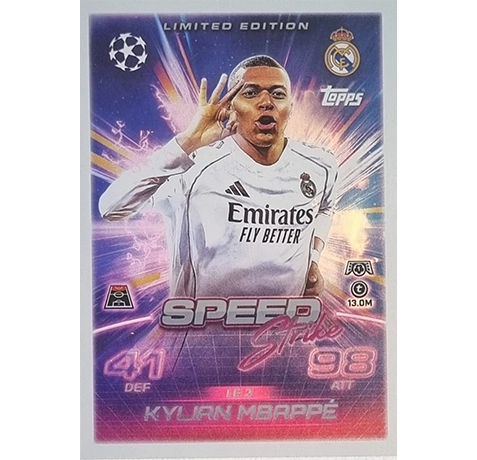 Die Topps Match Attax Champions League 2025/26 Limited Edition Karte LE 02 Kylian Mbappe ist eines der absoluten Highlights der neuen Saison. Mit exklusivem Design und hohem Sammlerwert gehört diese Karte in jede Match Attax Sammlung. Wer seine Sammlung komplettieren will, kommt an dieser LE nicht vorbei.